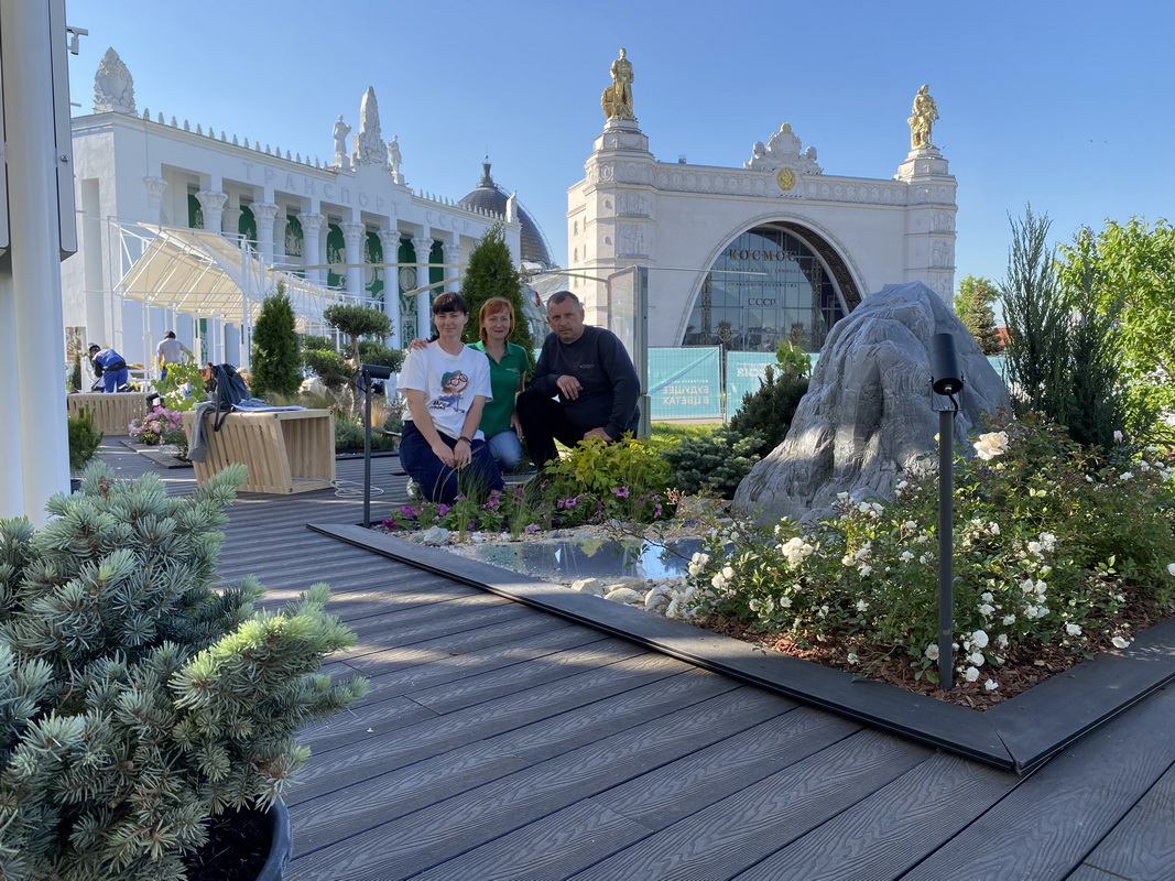 1. Рядом со свежеизготовленной композицией. Руководитель питомника С.С. Ермоленко, директор по развитию питомника Л.А. Каменских, менеджер по продажам Н.И. Кугутенко