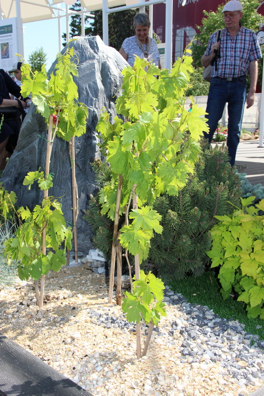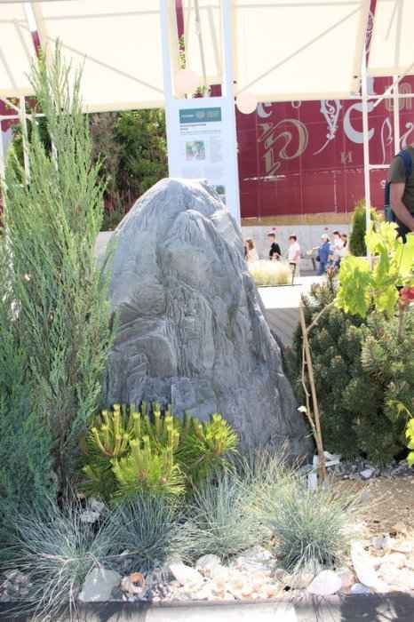 Сделанная нами композиция рассчитана на долгую, более того, раскрывающуюся со временем декоративность. Ещё контрастнее будет выглядеть хвоя на соснах и можжевельнике. Куртинки овсяницы превратятся в сплошное «море», на которомгуляет лёгкий бриз. Подрастёт виноград, наберёт мощи и жёлтого цвета пузыреплодник, при хорошем (надеемся) уходе сплошь покроются кипенно-белыми цветкамикусты роз и сиренево-лиловые петунии. Созреют сладкие ягоды садовой земляники. Правда, посещающие выставку дети зорко следят за их созреванием, и уж ягод точно много не будет. Но ведь это дети. Наше будущее.