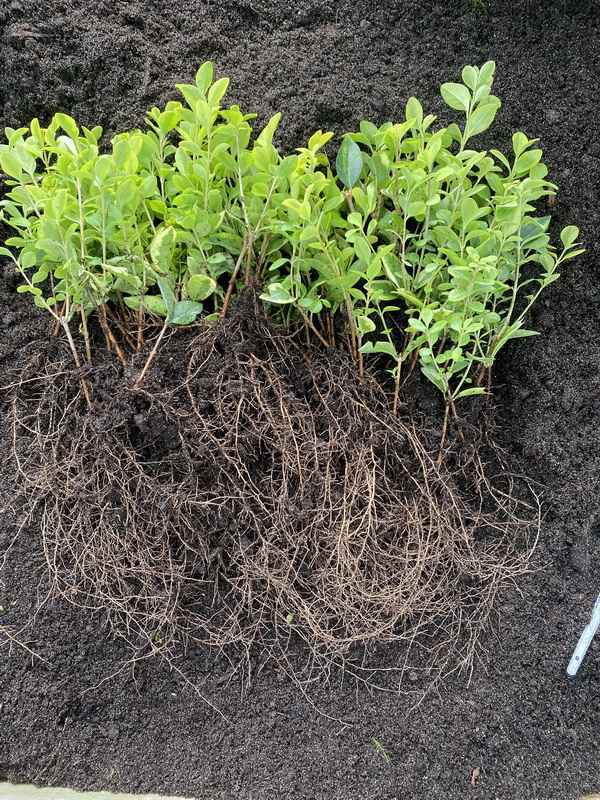В июне 2024 года мы заложили очередной опыт по укоренению черенков лиственных и хвойных культур. Цель этого опыта — определить эффективность стимулирующего действия на укореняемость черенков удобрения «Активный рост» компании Biotence. Это удобрение содержит комплекс фитогормонов, гуминовые, фульвокислоты и свободные аминокислоты, другие органические вещества. Сейчас такие удобрения популярны, они положительно влияют на рост и развитие растений, их производят несколько компаний в нашей стране и за рубежом. Мы решили сравнить действие этого удобрения с известным и широко применяемым стимулятором ауксинового типа Корневин, СП компании «АгроСинтез», а также с сочетанием этих препаратов. Объектами исследования послужили бирючина обыкновенная ‘Aureum’, бирючина овальнолистная ‘Argenteum’, вейгела цветущая ‘Caricatura’, дёрен белый ‘Red Gnome’, спирея японская ‘Anthony Waterer’, туя западная сортов ‘Brabant’, ‘Woodwardii’, ‘Mirjam’, и другие культуры. Исследовали укореняемость и биометрические характеристики укоренённых черенков.